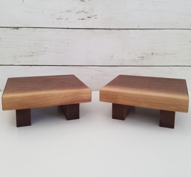 Small Walnut Wood Square Risers for Plants, Candles and Collectibles (Set of 2), Wooden handmade Small Paata