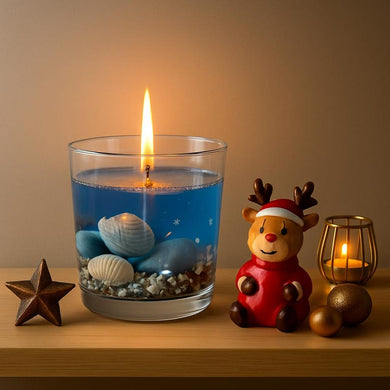 Ocean Gel Candle, Seashell Decorative Candle, Blue Gel Jar Candle, Nautical Home Decor, Unique Handmade Gift for Holidays Xmas