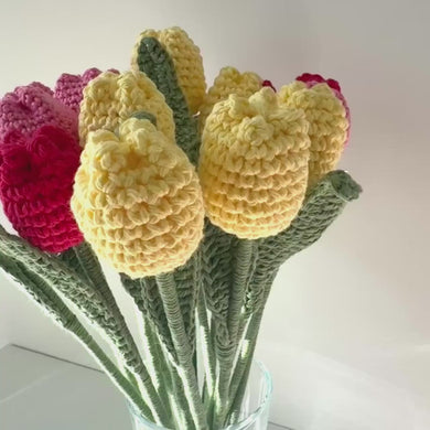 Handmade Tulip Flower Bouquet, Crochet tulip flowers, Crochet gift, Office decoration, Home decoration, valentine's day gift,