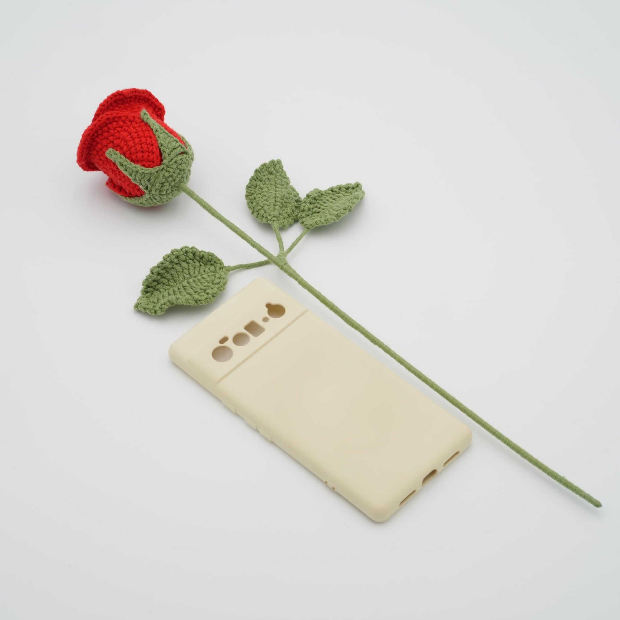 Handmade Crochet Rose with Leaves and Long Stem Best Gift for Valentine's Day&New Year Suitable for Anniversaries Birthday Celebrations (Red, 2.5" Diameter)