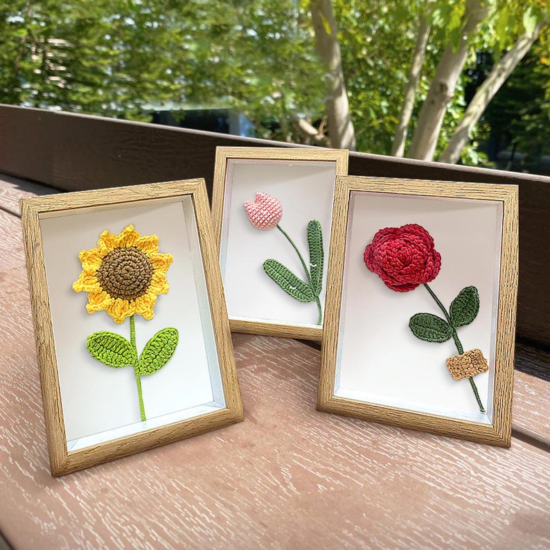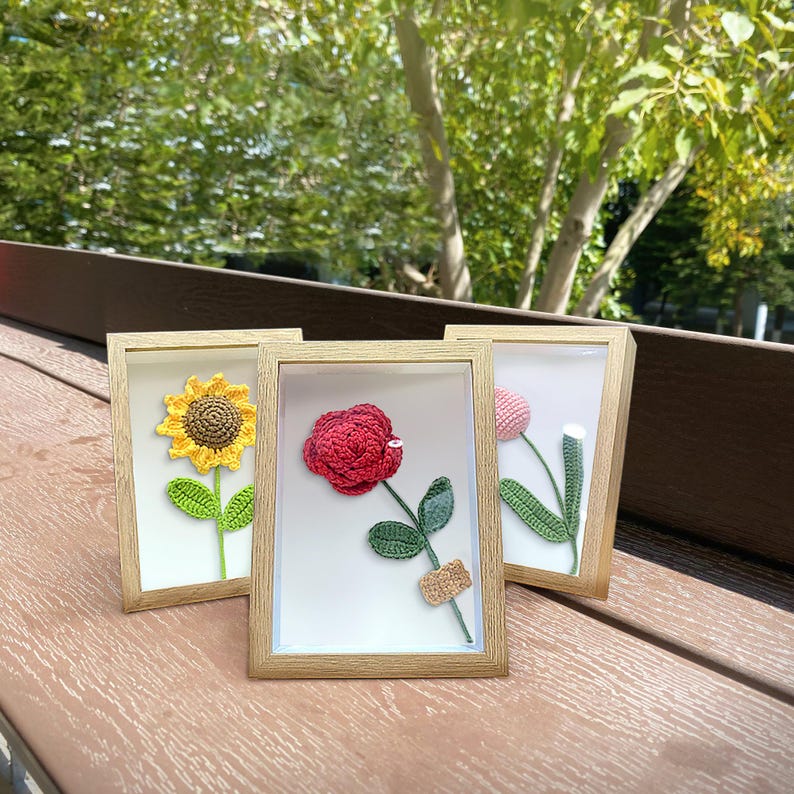 Each plush flower in this frame is meticulously handmade with the most expensive yarn that won't pill like other cheap yarns over time. Unlike real flowers that fade and discolor, these handmade flowers will remain beautiful for many years, providing a sustainable decorative solution! They will never wilt or fall off, representing a lasting and eternal bloom