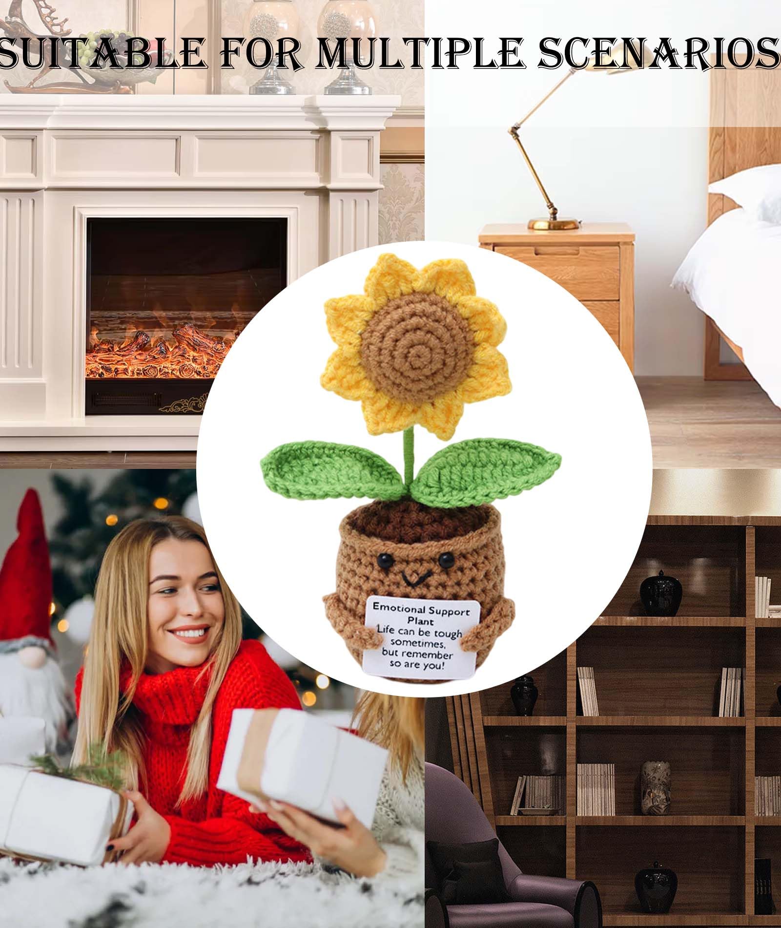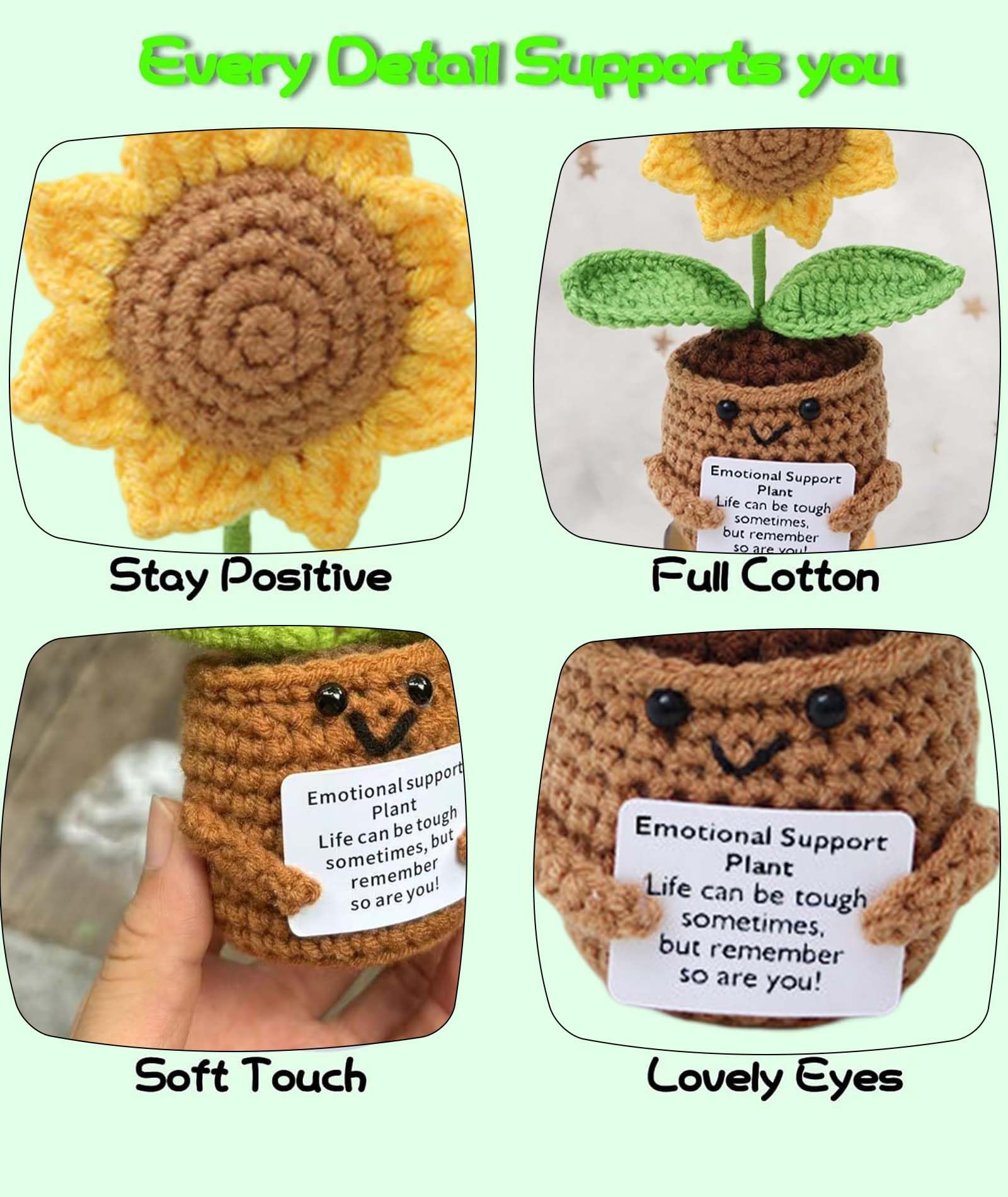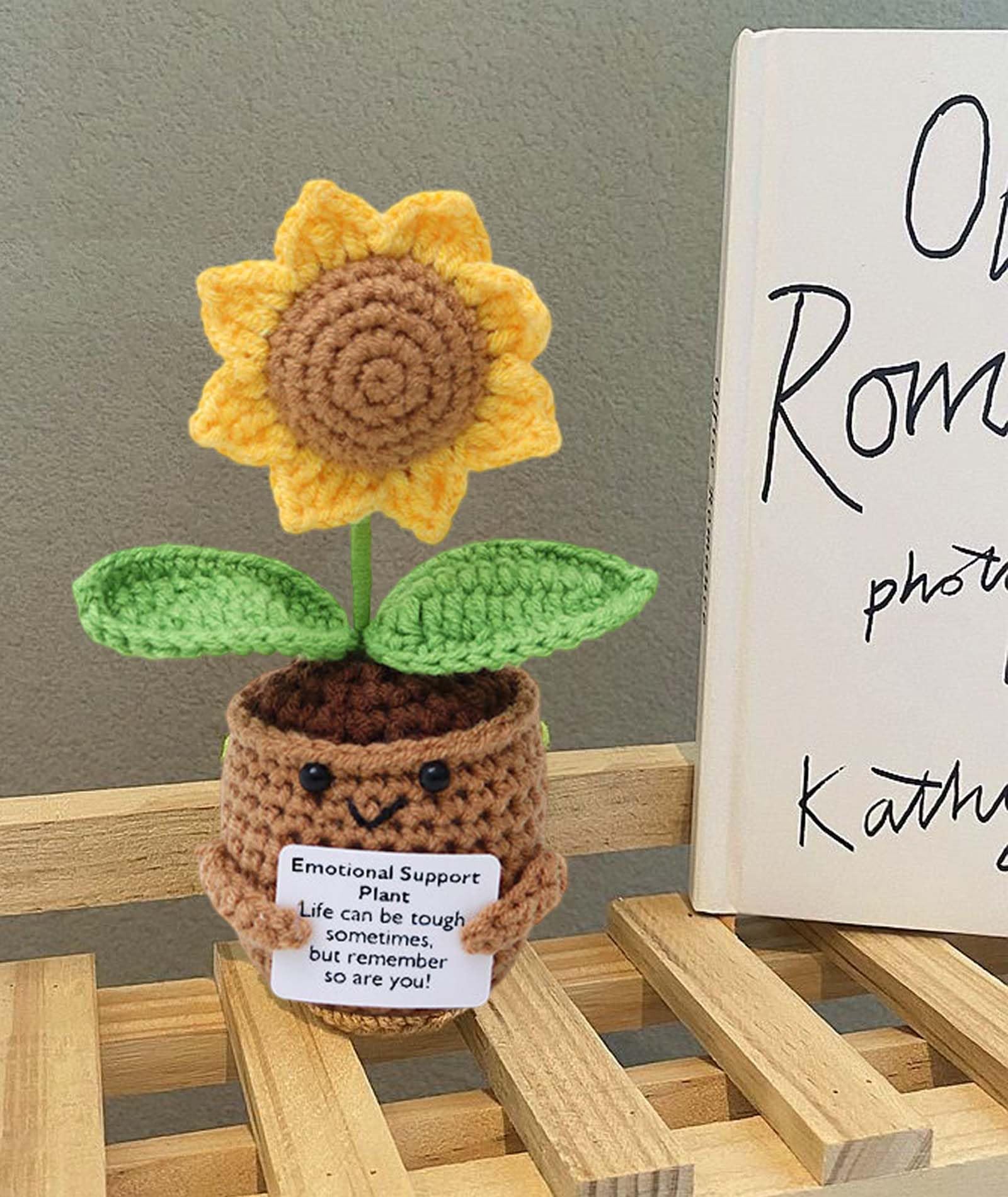 - Crochet design: This emotional support plant is crocheted, which means it is handmade with yarn and crochet hooks, creating a soft, textured surface. Sunflowers can be made from bright yellow and brown yarn, with green leaves and stems, making them a bright and joyful decoration.