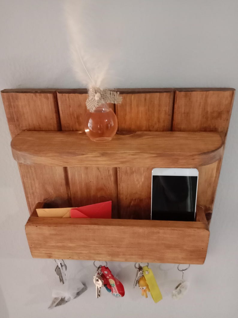 Perfect for keeping your essentials in one place! This stylish wall organizer holds your keys, phones, and small items right where you need them. Save space and reduce clutter in your entryway or hallway. Its charming design adds a cozy touch to any home. A must-have for anyone who loves staying organized!