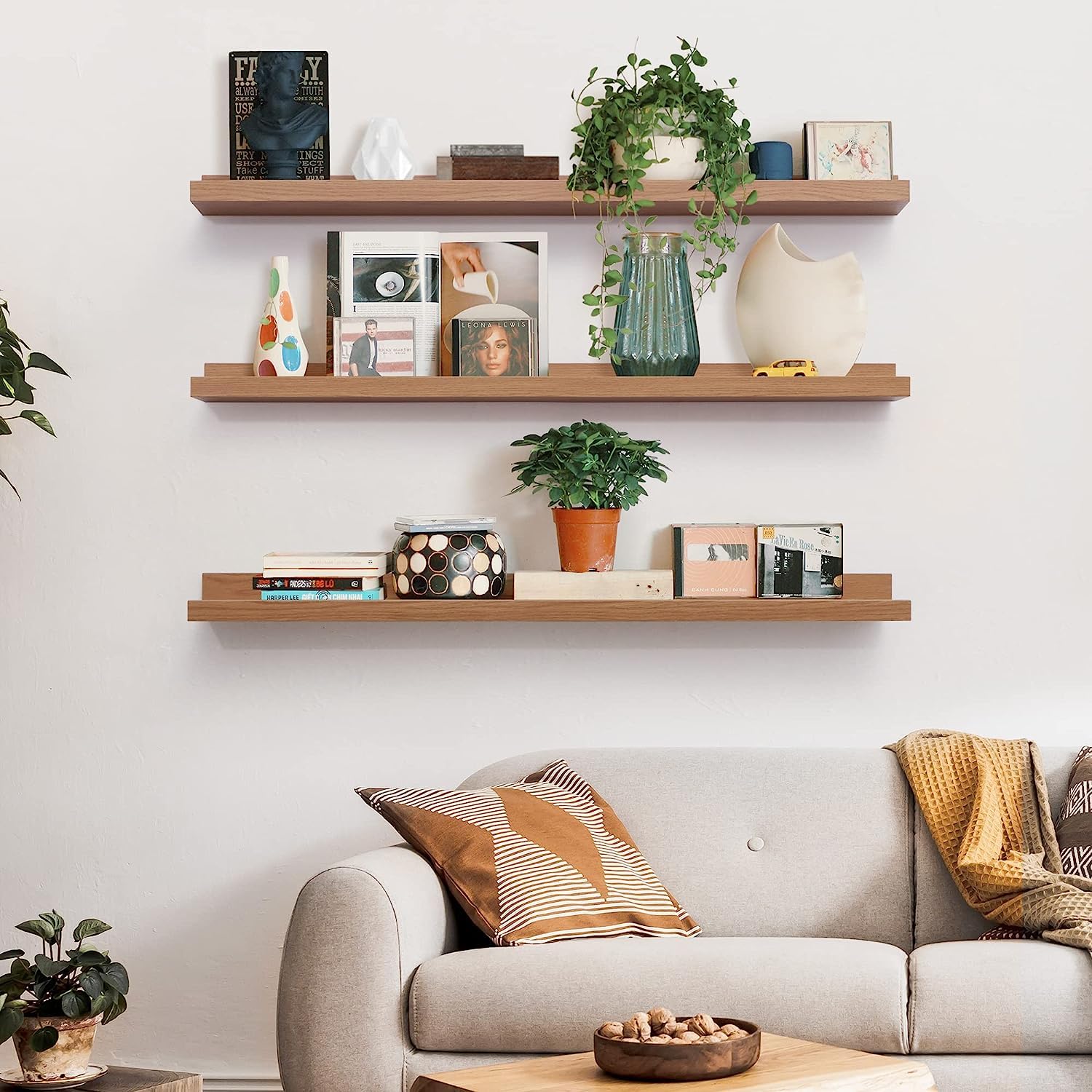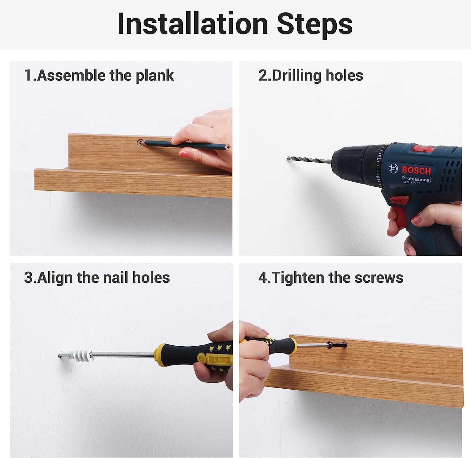 - 【Easy to Assemble】Come with all mounting hardware and instructions. You can install them in less than 15 minutes. Each shelf supports about 22 lbs.