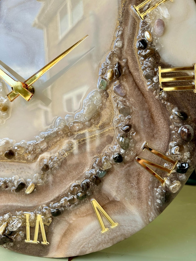 Elegant Resin Wall Clock 10  inch, In Stock, Natural Stones, Christmas gift