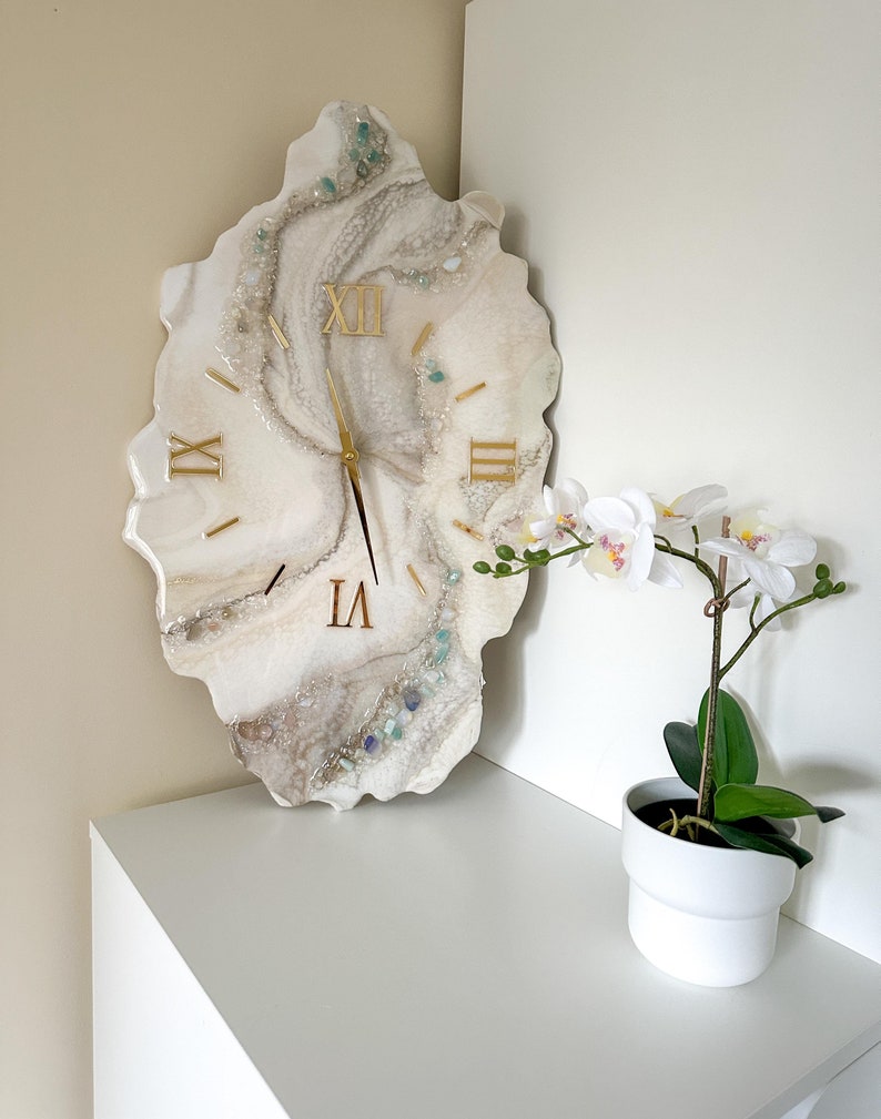 This handmade epoxy resin clock is not just a timepiece; it’s a work of art. It also makes for an exceptional gift for anniversaries, birthdays, weddings, housewarmings, and other special occasions. Your friends and loved ones will appreciate this thoughtful and elegant gift that they can cherish for years.