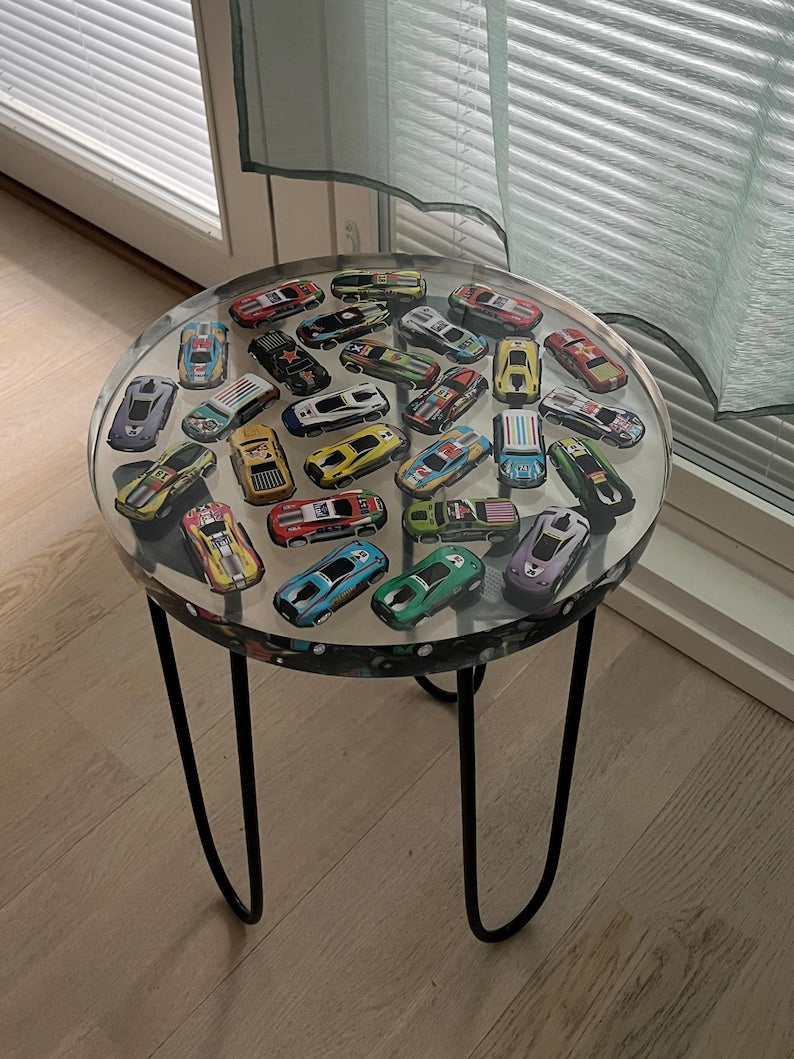 Center Table made of Epoxy Resin with cars inside, gift for the house, and mother, end table, round coffee table, epoxy table