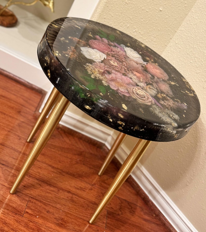 Handmade epoxy resin flower side table large 18" ,  customization available