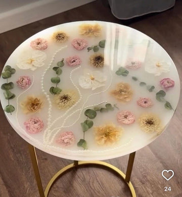 Flower Preserved Resin Side Table, Table with flowers Preserved , Custom flower Side Table, Bridal Flower Table , Resin Side Table, Real Flower Side Table![]()  - Regular price