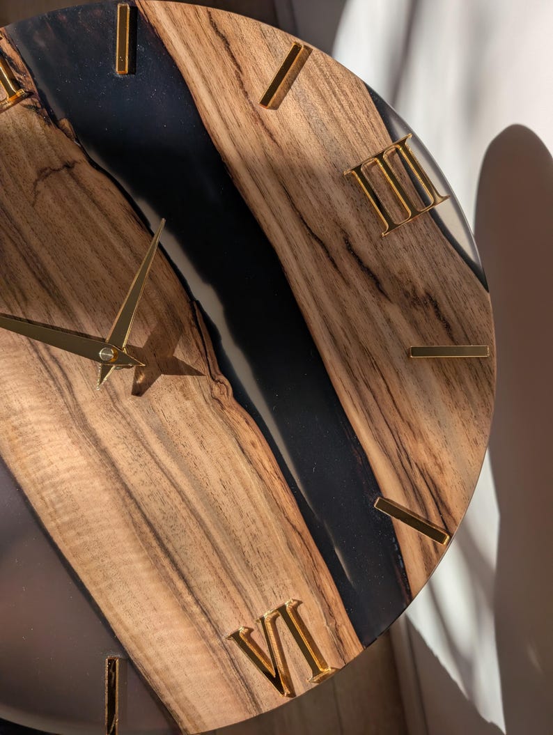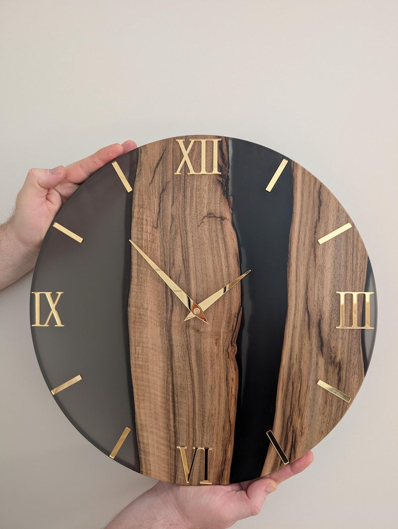 Wood & Epoxy Resin Wall Clock, Minimalist Handmade Wooden Clock, Matte Finish, Mirror Acrylic Numbers, Modern Home Decor