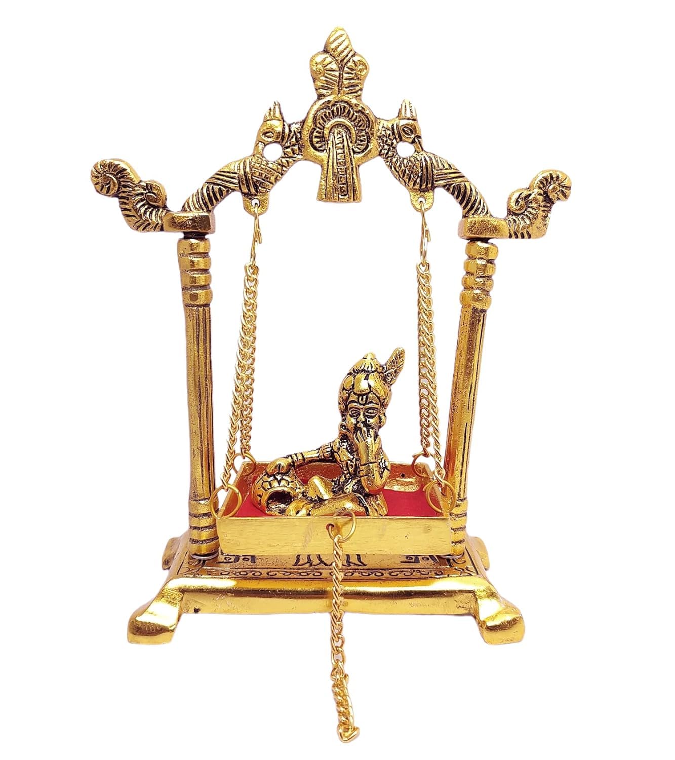 Details: Chhariya Crafts Metal Golden Finish Swing Jhula with antique finish so looks very beautiful and use for the purpose of worship and for home decorative. It's design to looks traditional stylish and inspiration from the day's of royal touch, that is made in white-metal casting with silver antiques finish, white metal to bring elegance to your home. This is hand made handcrafted items use it to religious worship of god&goddess. That is use and utility items & an ideals gift it to your dear once to pass on your best wishes, that is an ideal gift for have House warming anniversaries, birthday, wedding gifts, return gifts, corporation gifts, religious-gifts & Indian festivals. Our White Metal Gold Plated Showpieces is an impressive piece of art that is made from the finest-grade raw materials and intricately designed by our teams of adroit designers and craftsmen using high-end technologies.