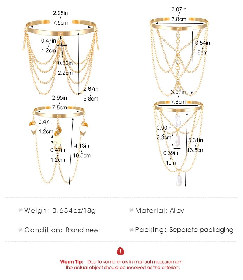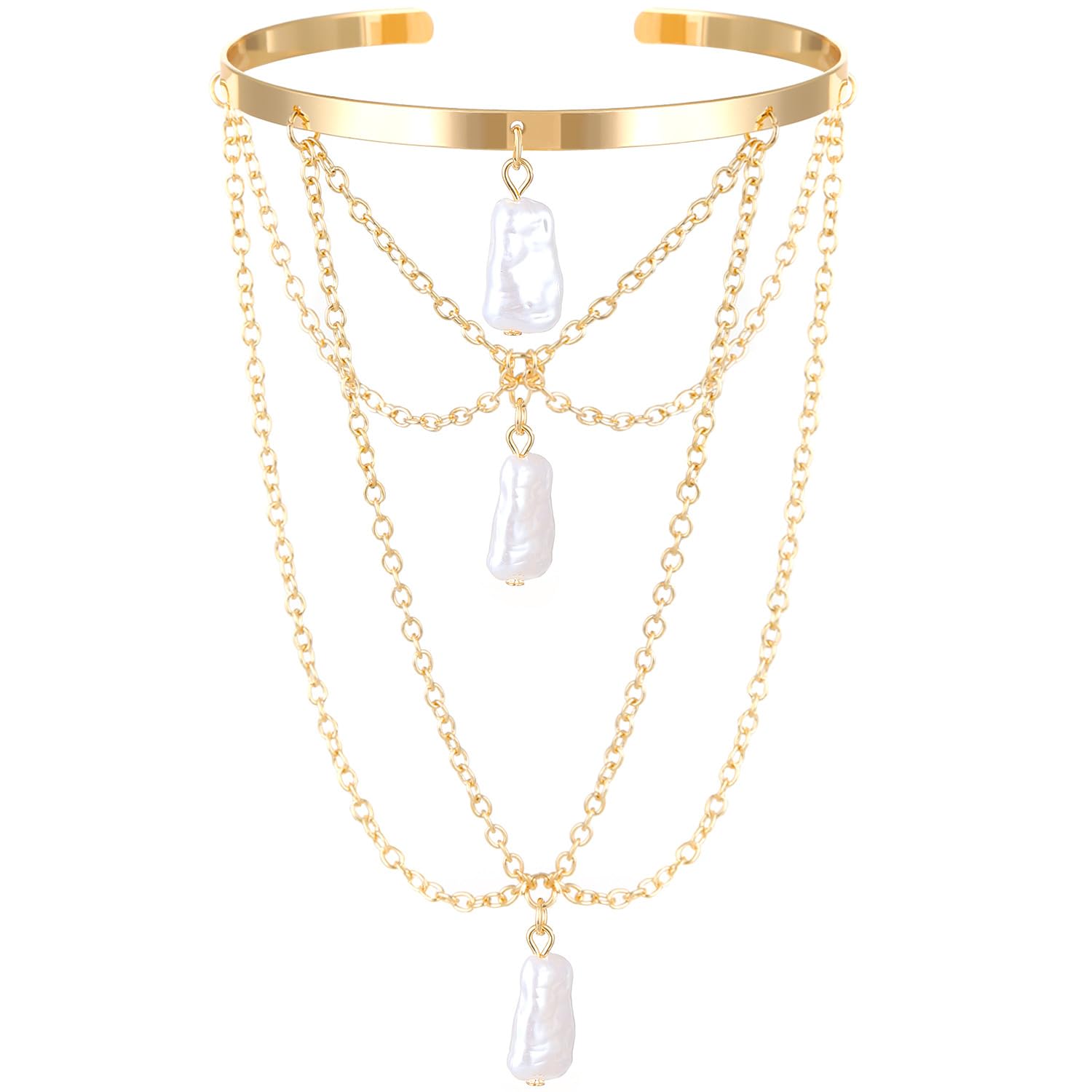 CJIAYUJEW Minimalist Arm Cuff for Women Gold Arm Cuff Upper Arm Layered Tassels Heart Rhinestone Pearl Arm Bracelet Stackable Arm Bangle Jewelry for Women