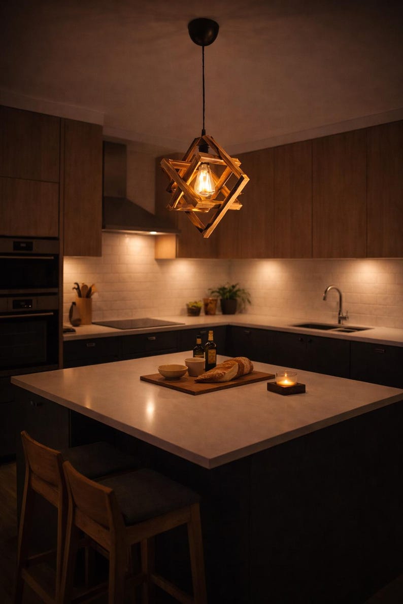 This wood pendant light adds a cozy yet stylish touch to any space and works beautifully as a focal point in kitchens, dining areas, or entrance halls.