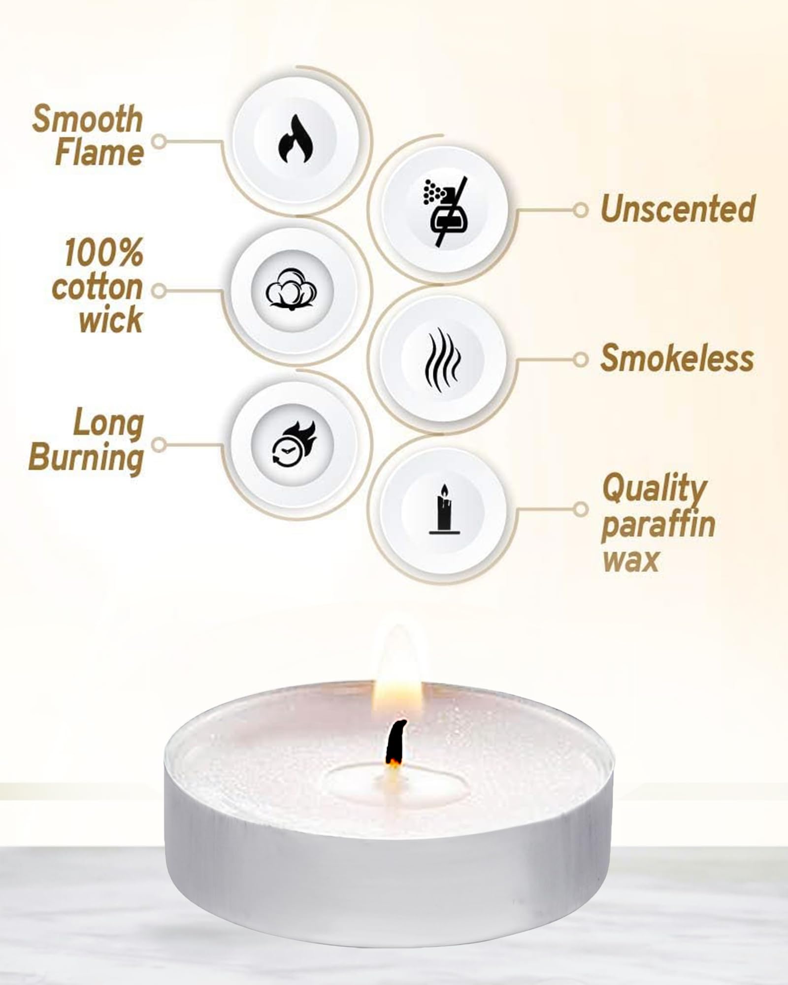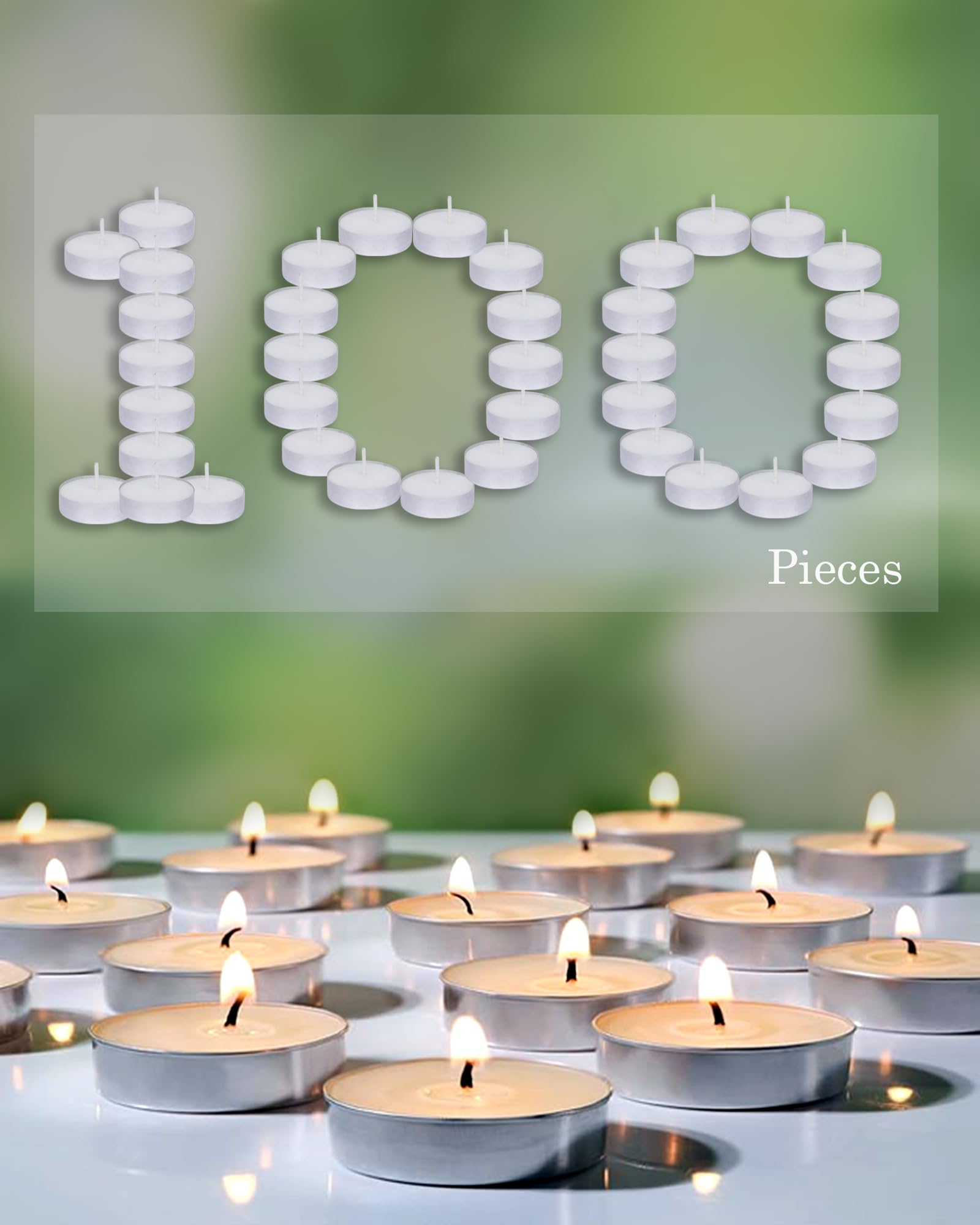 - Set of 100 unscented wax tealight candles