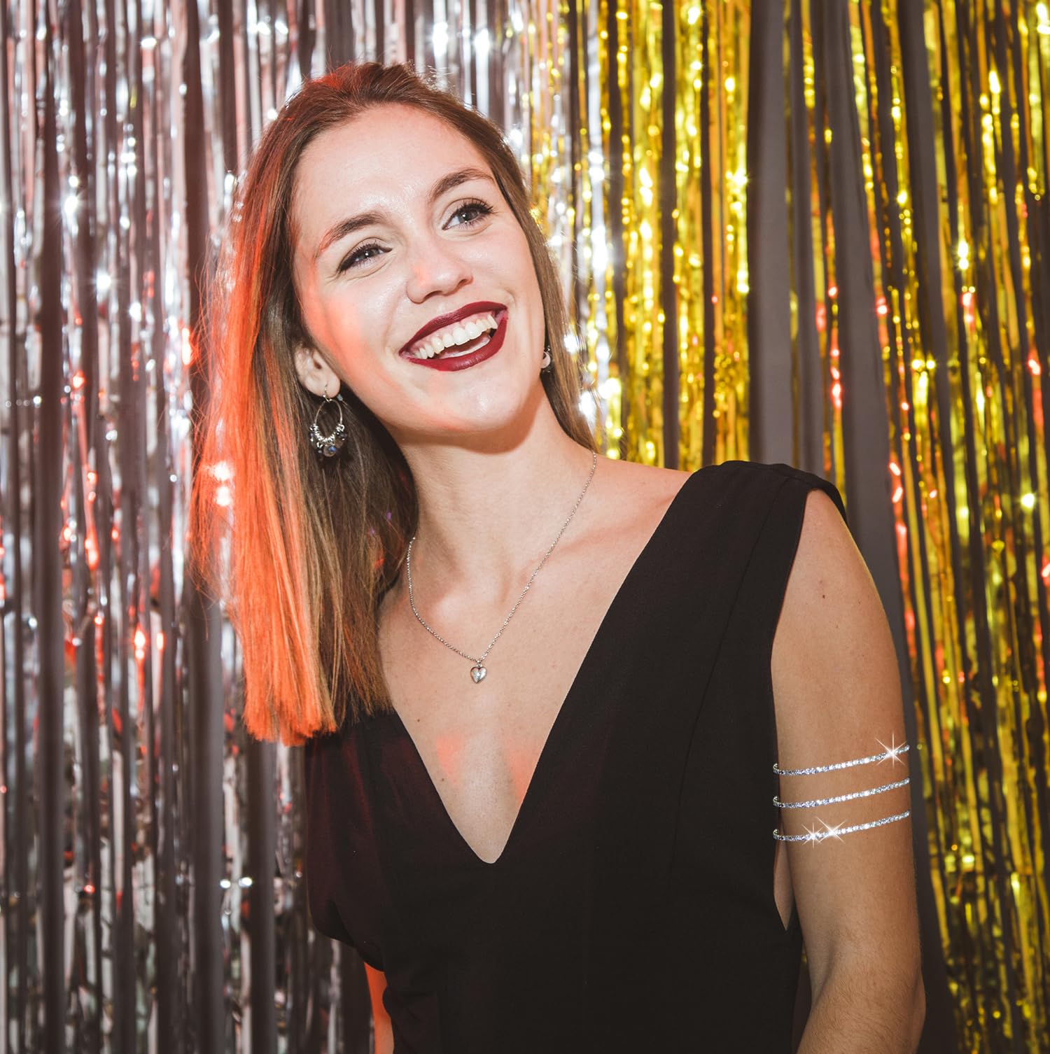 - 【Sparkly Arm Cuff Jewelry for Women】: This multilayer silver rhinestone arm cuff bracelet for women is made of high-brightness & quality zircon. It is hypoallergenic and will not tarnish or fade easily.