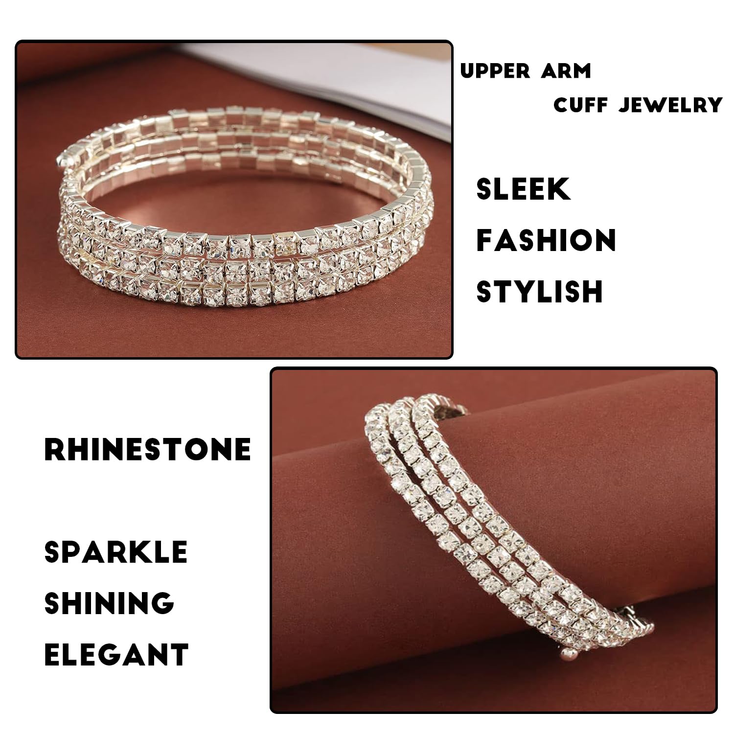 - 【Unique Design】: This women's crystal upper arm cuff jewelry features numerous rhinestones. Super sparkling and shining, It makes a good party or prom outfit accessory.