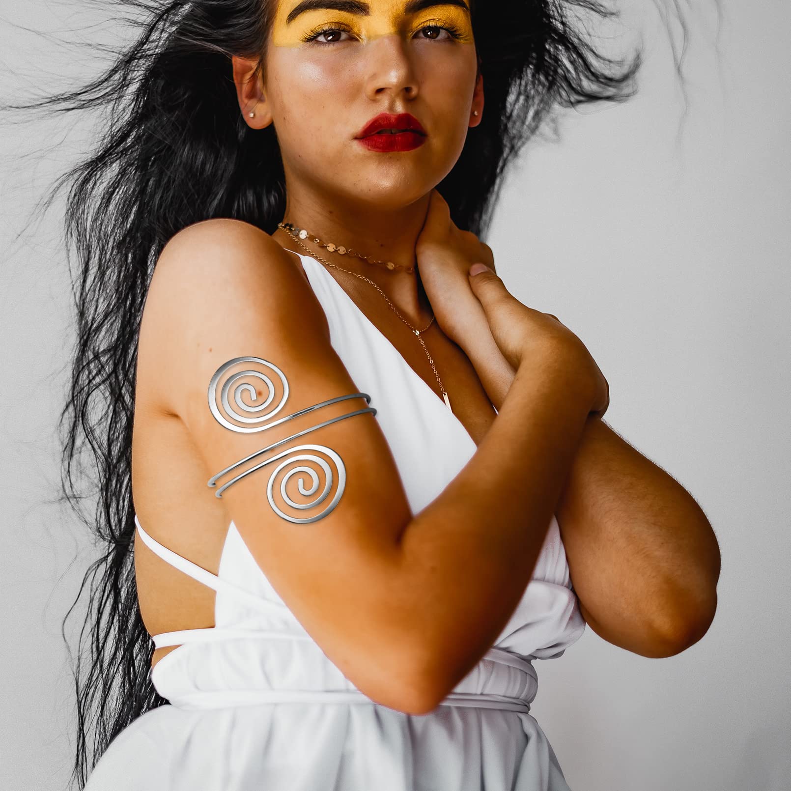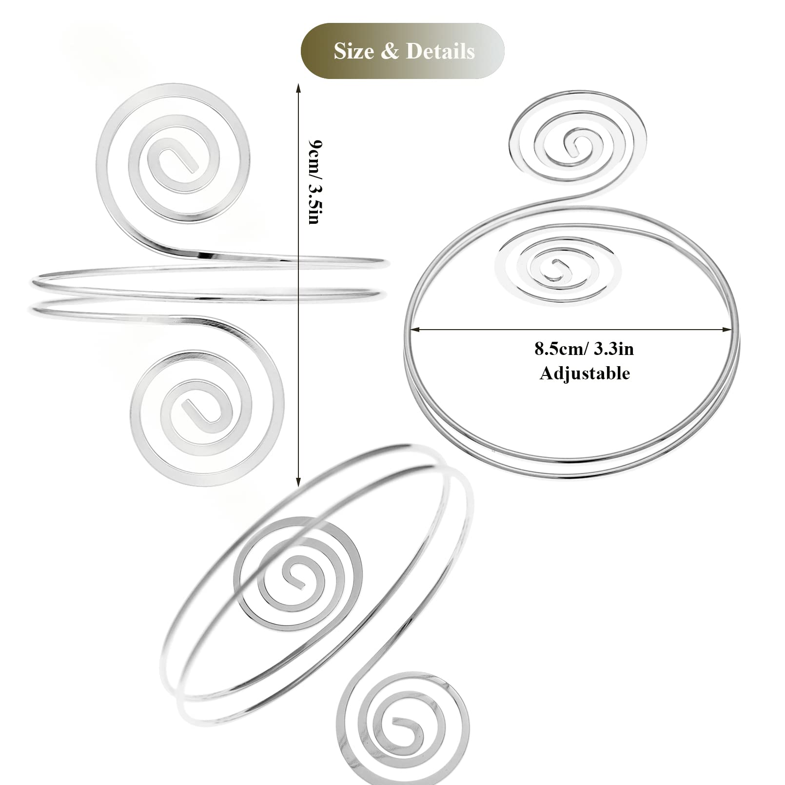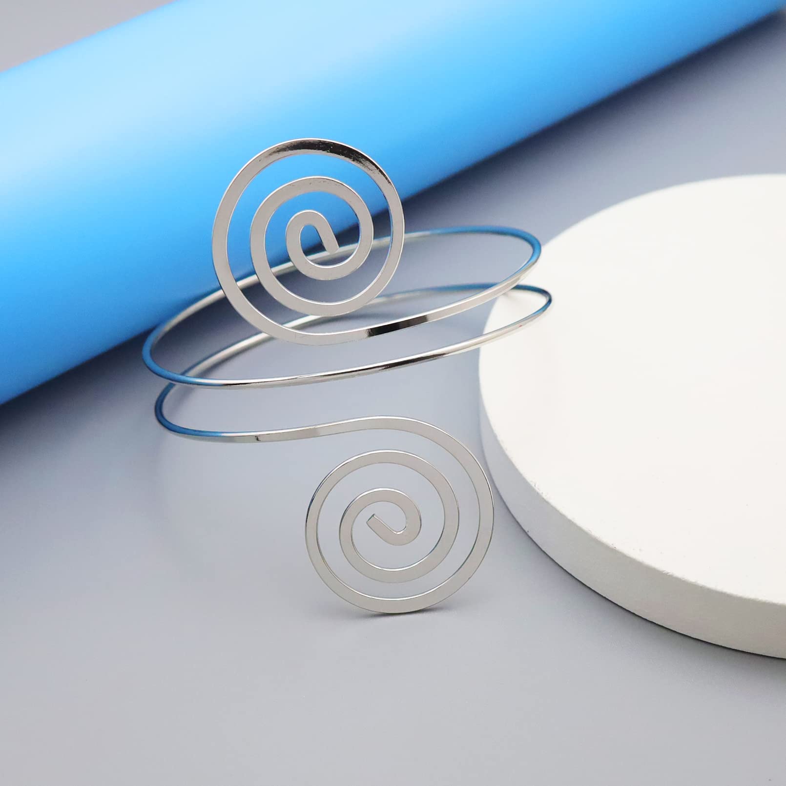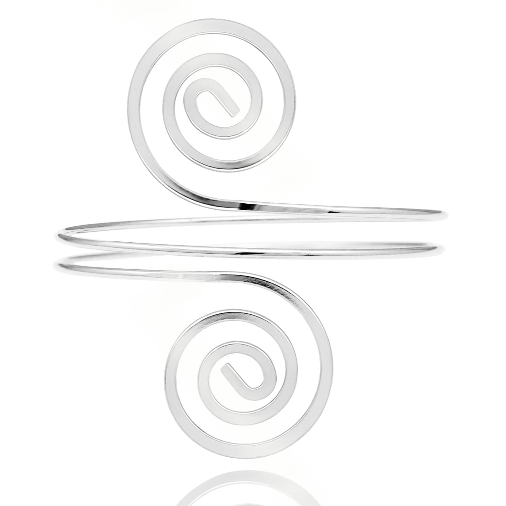 RechicGu Women's Plated Q&Q Fashion Victorian Filigree Swirl Gypsy Boho Armband Upper Arm Cuff Armlet Belly Dance One Size Silver