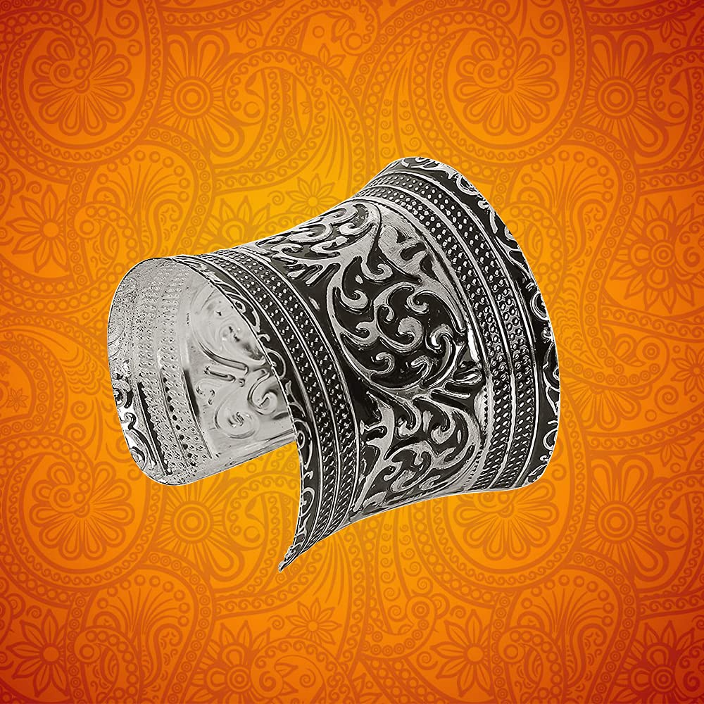 YouBella Jewellery Silver Plated Oxidised Cuff Bracelet Bangle for Women and Girls (Style 1)